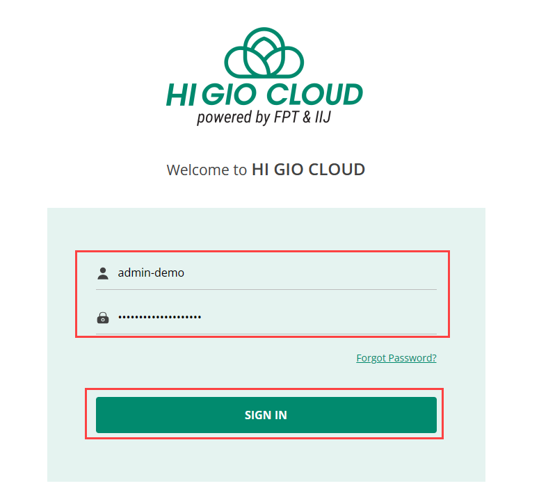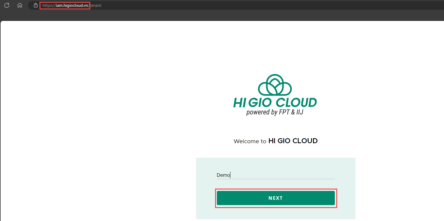 Bước 1: Đăng nhập vào cổng HI GIO IAM với tên miền https://iam.higiocloud.vn