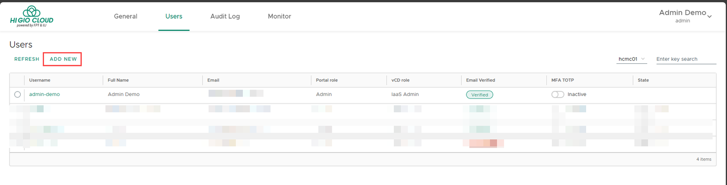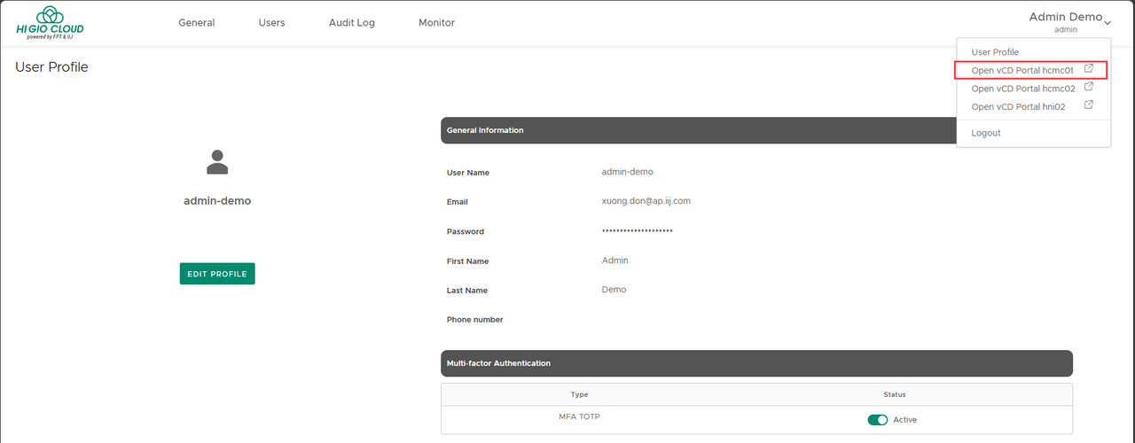 HI GIO Cloud bao gồm 2 portals: IAM portal & vCD portal.