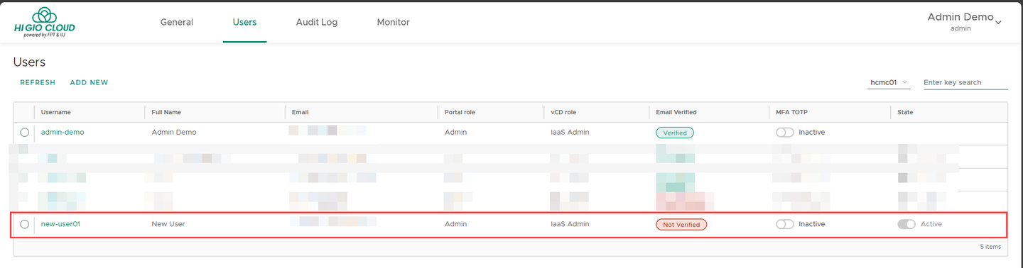 Người dùng mới sẽ nhận email để kích hoạt tài khoản IAM (Xem Kích hoạt tài khoản HI GIO - IAM)