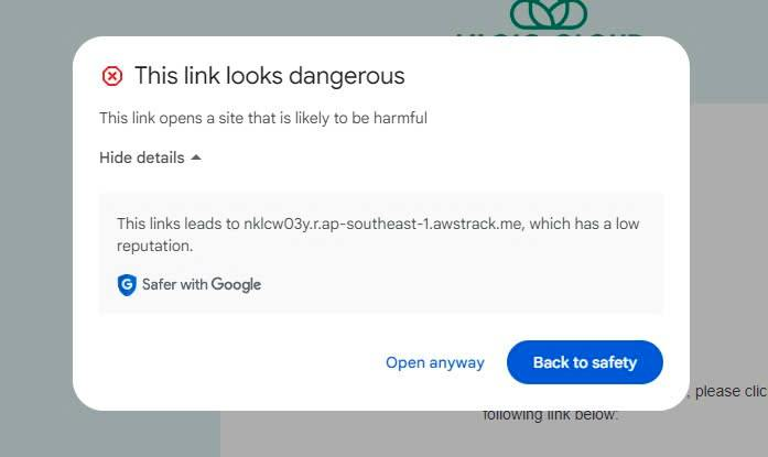 Đây là liên kết an toàn. Thông báo này xuất phát từ AWS SES.