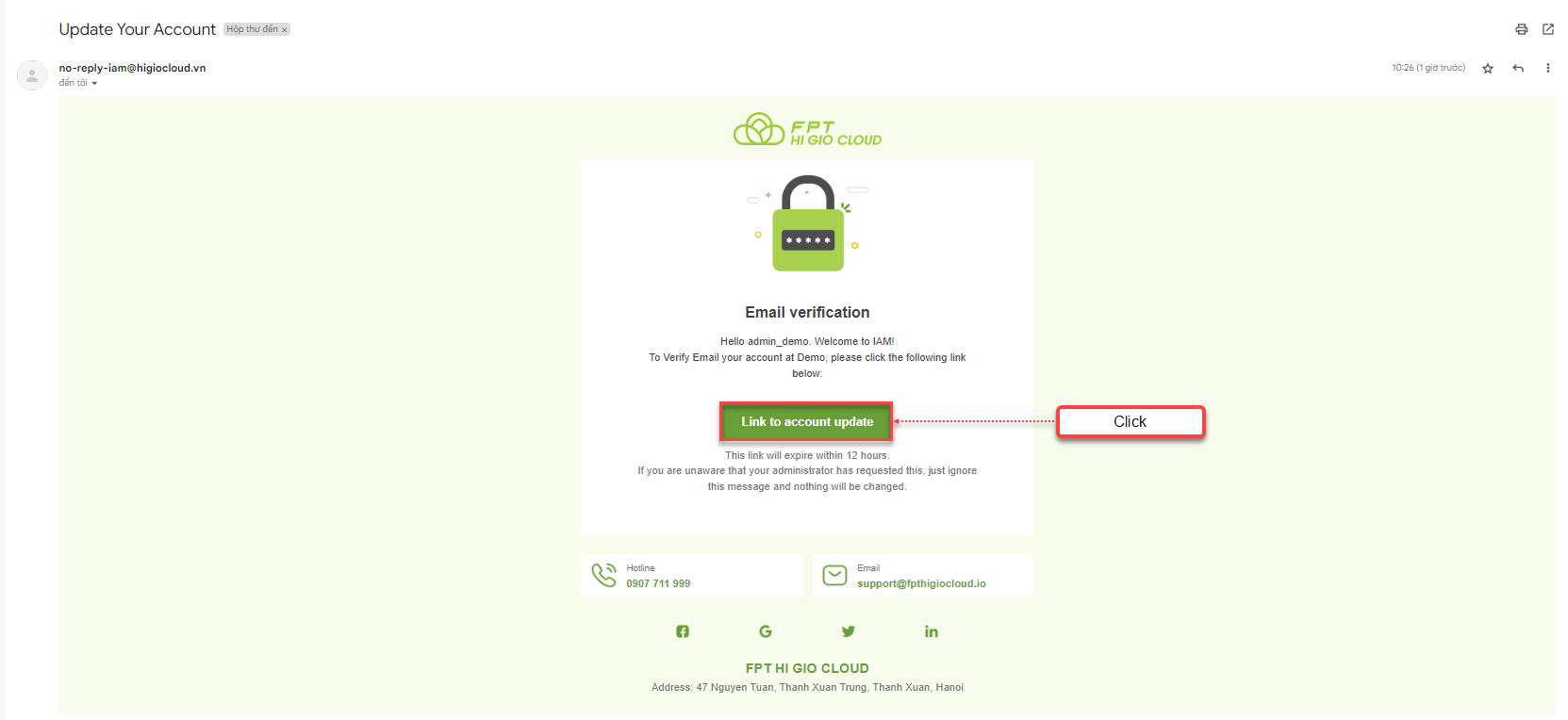 Bạn sẽ nhận được email kích hoạt sau khi yêu cầu tài khoản HI GIO. Bạn cần kích hoạt tài khoản này khi đăng nhập lần đầu tiên.