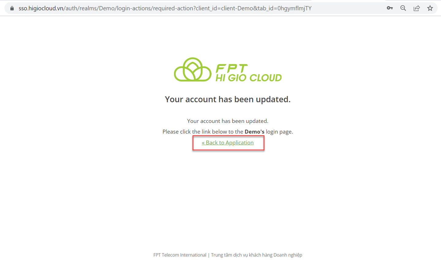 Bước 5: Nhấn “Back to Application” để đăng nhập vào HI GIO.