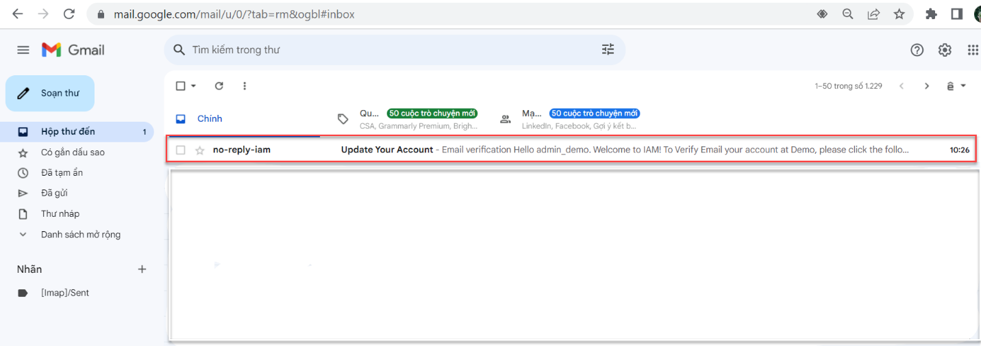 Bước 1: Kiểm tra email kích hoạt, với tiêu đề: no-reply-iam từ [email protected]