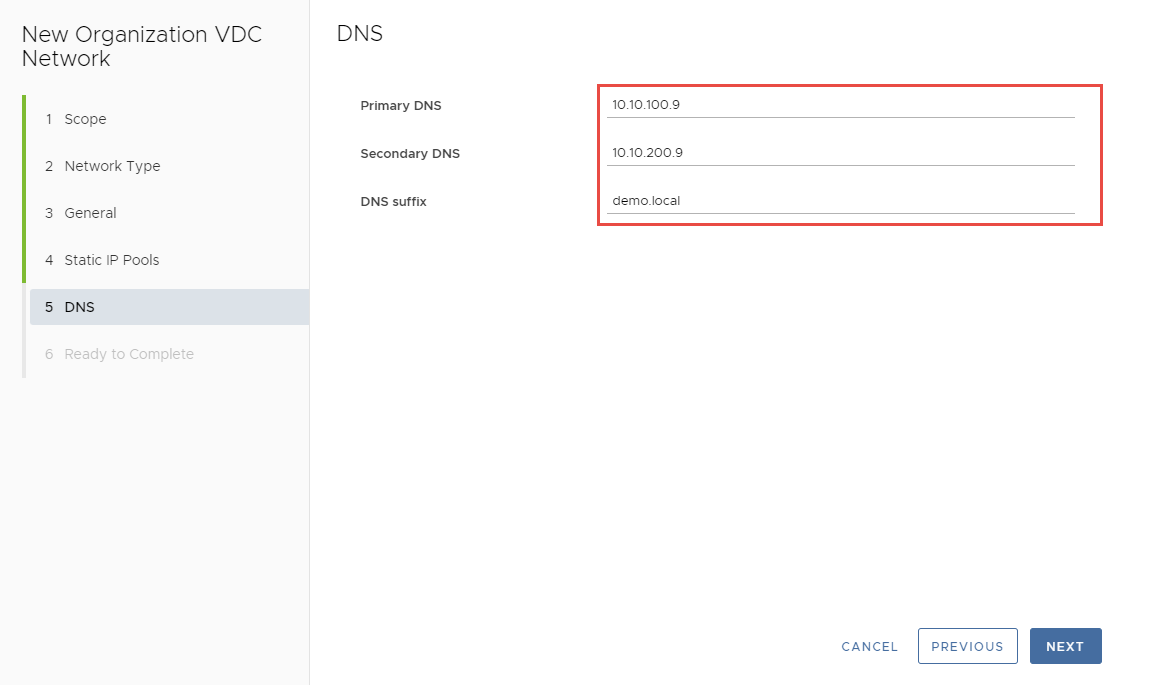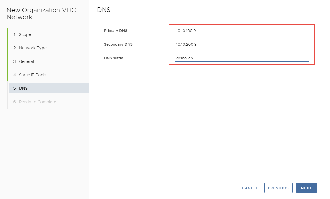 Bạn có thể nhập Primary DNS, Secondary DNS, và DNS suffix >> Next.