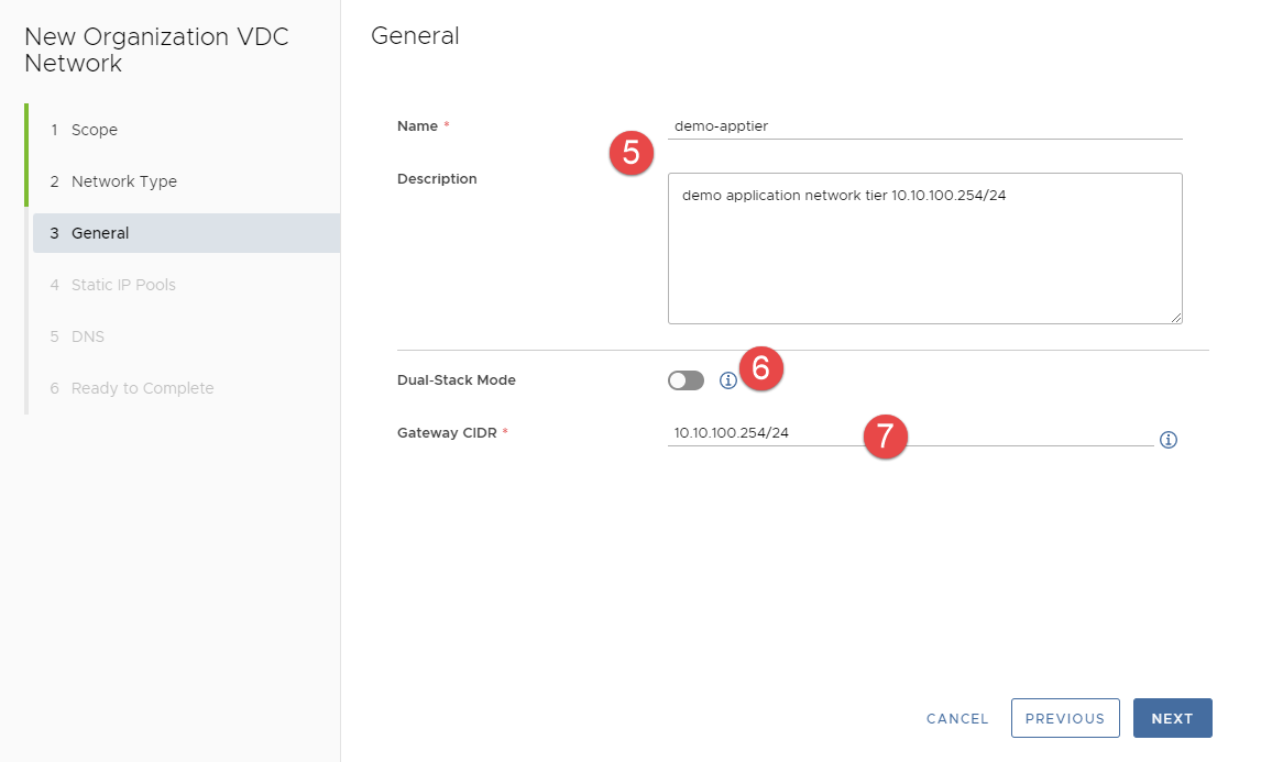 Trong tab Networks, nhấp vào New để mở cửa sổ New Organization VDC Network.