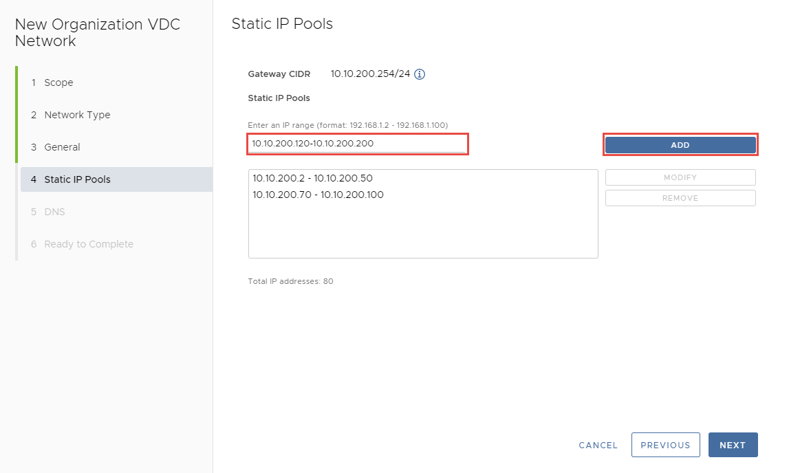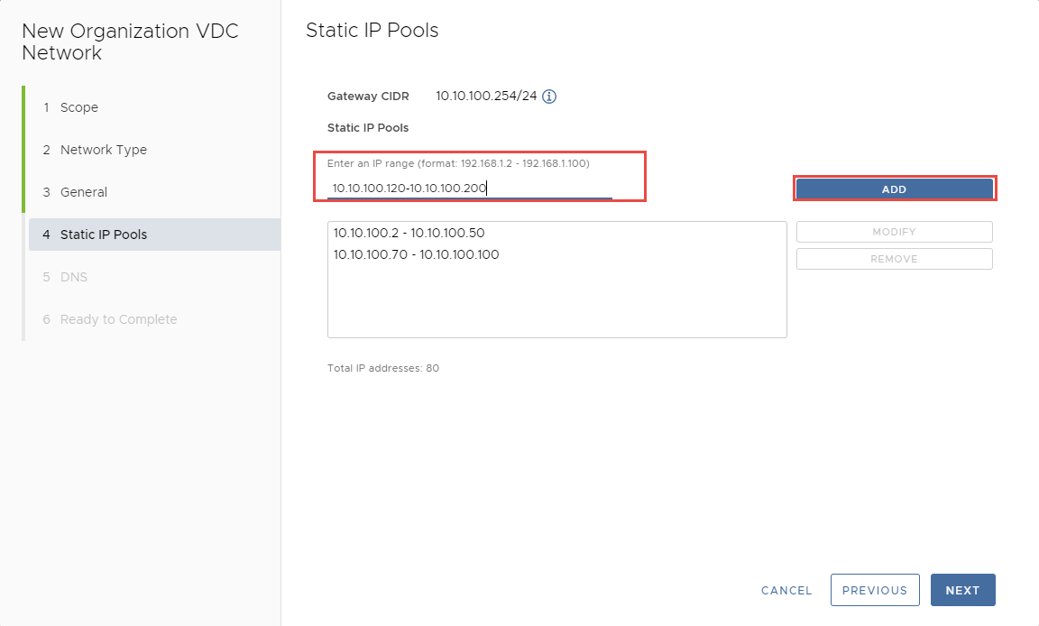 Trong phần Static IP Pools, nhập các dải địa chỉ IP bạn muốn sử dụng, nhấp Add >> Next.
