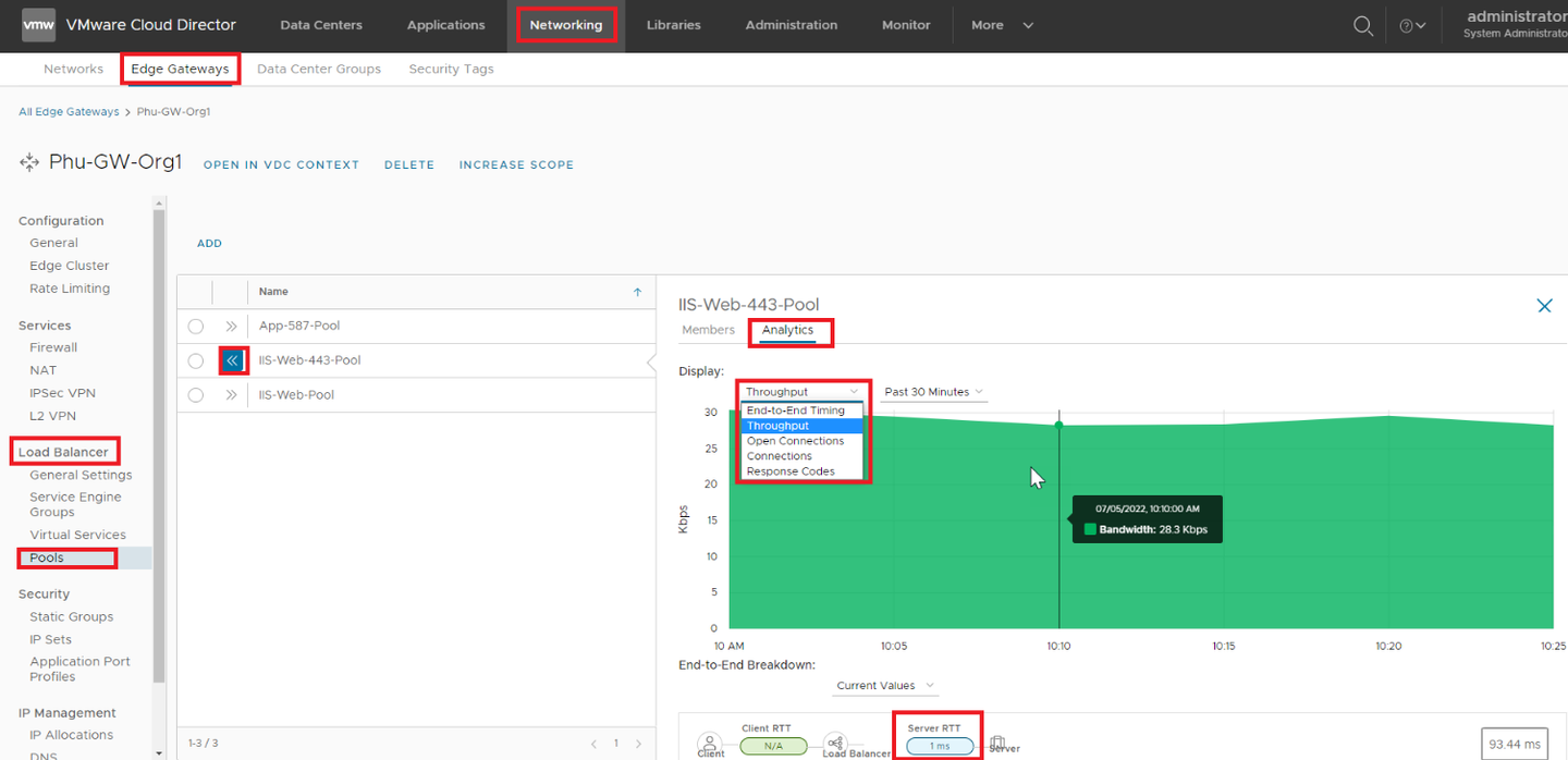 **Networking** > **Edge Gateway** > **Load Balancer** > **Pool**.
