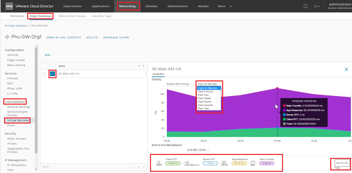**Networking** > **Edge Gateway** > **Load Balancer** > **Virtual Services.**