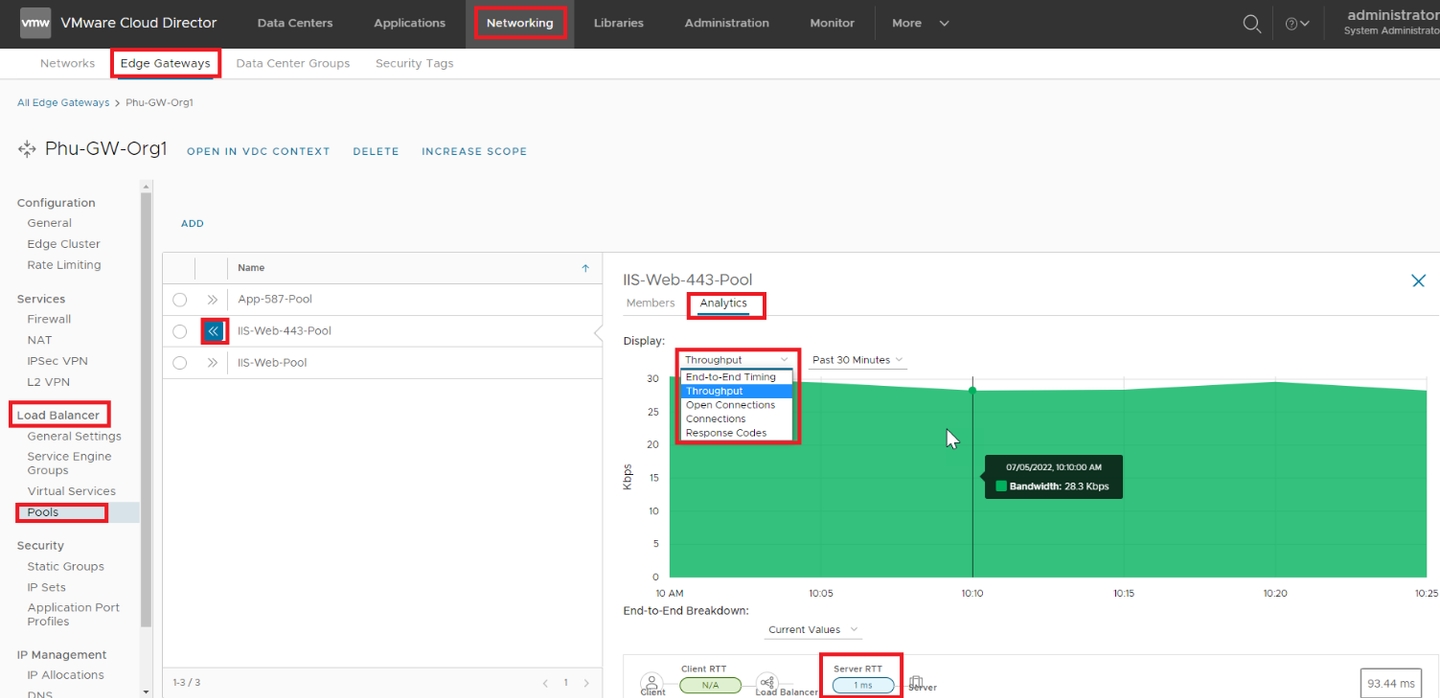Networking > Edge Gateway > Load Balancer > Virtual Services.