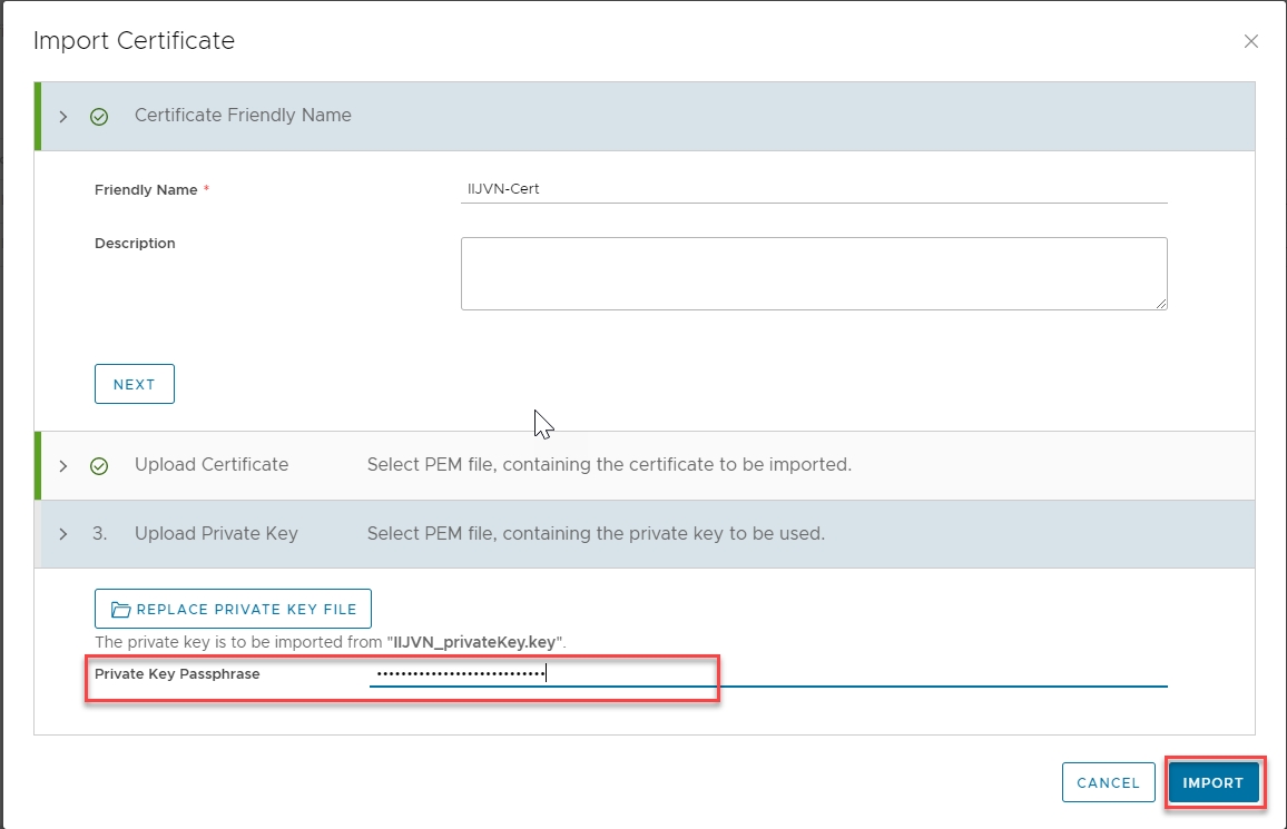 Nhập Passphrase của Private Key Passphrase nếu Private Key của bạn được bảo vệ bằng mật khẩu. Nhấn IMPORT.