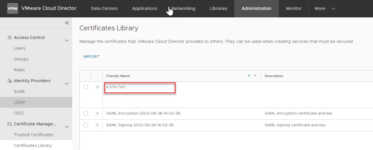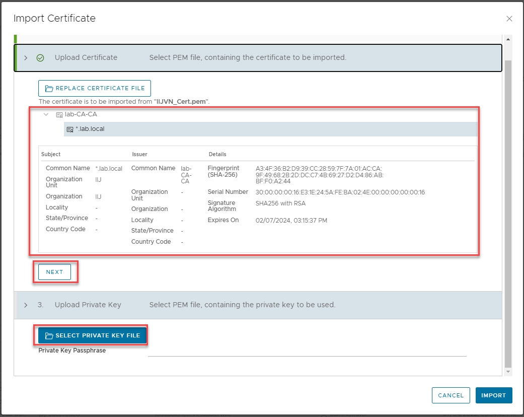 Bước 2: Nhấn IMPORT để Import Certificate và Private Key cho việc mã hóa lưu lượng ứng dụng.