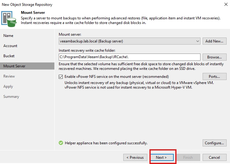 Trên trang Recovery Instance, cấu hình recovery point và nhấp Next.